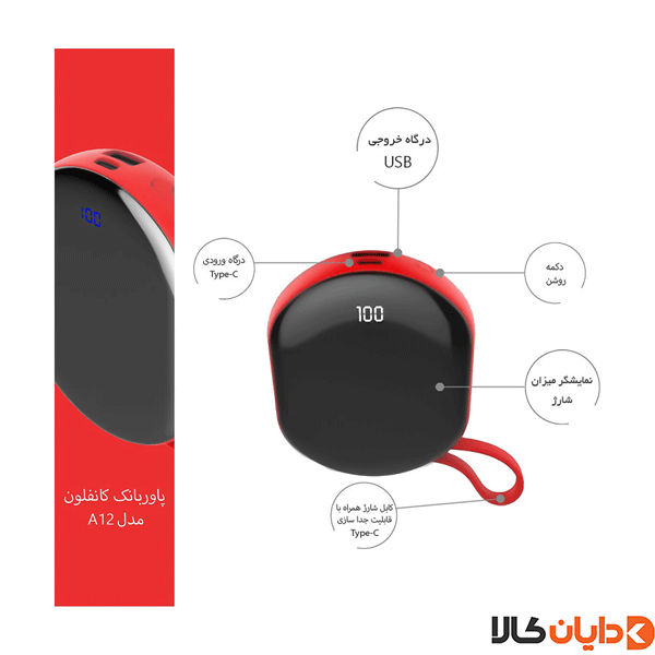 پاوربانک کانفلون مدل A12 ظرفیت 10000 میلی آمپر
