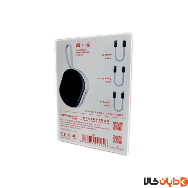 پاوربانک کانفلون | KONFULON مدل A12 دارای ظرفیت 10000 میلی آمپر ساعت میباشد.همچنین این پاوربانک 10000 مناسب دستگاه هایی است که از قابلیت شارژ سریع پشتیبانی میکنند.از قابلیت های ویژه این دستگاه،همسان سازی ورودی و خروجی بوده و دارای نشانگر شارژ میباشد.این شارژر همراه 10000 به محص اتصال کابل شارژ به پاور بانک، به صورت خودکار روشن میشود.همچنین این پاور بانک 10000 دارای ذرگاه ورودی USB-C و یک درگاه خروجی که شامل پورت USB میباشد.