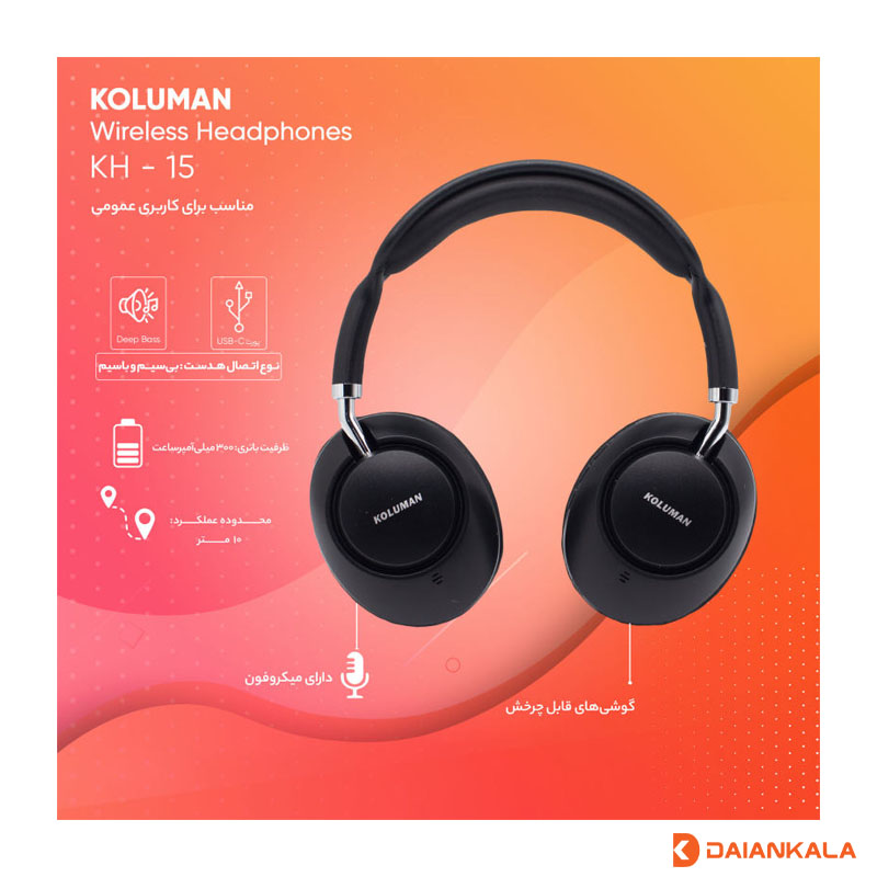 هدست بیسیم KOLUMAN مدل K15، یک انتخاب عالی برای تجربهی صوتی با کیفیت و چند منظوره است. با قطر درایور 40 میلیمتر و نوع آکوستیک نیمهبسته، این هدست تا 16 ساعت در حالت مکالمه و پخش موسیقی به کاربر امکان میدهد. همچنین، در حالت استندبای تا 100 ساعت تحت پوشش باتری قرار میگیرد.محدوده عملکرد بیسیم این هدست تا 10 متر است، و از نوع باتری لیتیوم-یونی با ظرفیت 300 میلیآمپر ساعت استفاده میکند.