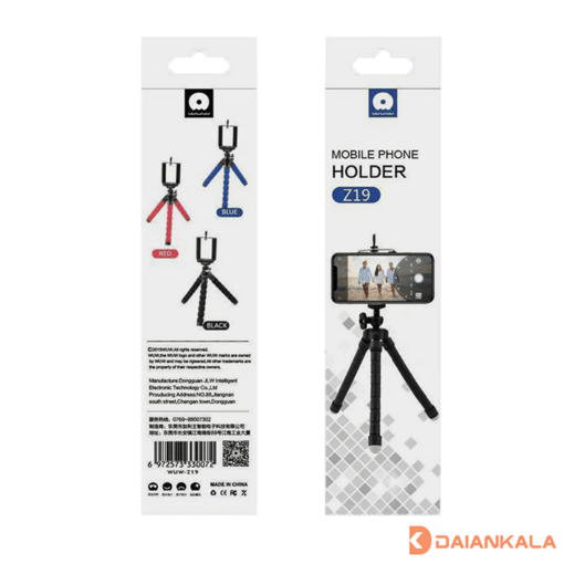 سه پایه عنکبوتی WUW مدل Z19 یک هولدر موبایل چند منظوره است که برای انواع گوشیهای موبایل مناسب است. بدنه این هولدر از پلاستیک ABS و سیلیکون ساخته شده است. این هولدر دارای وزن ۳۱۱ گرم بوده و ابعاد آن ۵.۵ × ۵.۵ × ۴۸۰ میلیمتر می باشد. این محصول دارای بند دستی و ریموت عکاسی است. همچنین این هولدر دارای اتصال کشویی است و قابلیت تنظیم زاویه را داراست، که به کاربران امکان انتخاب بهترین زاویه برای مشاهده موبایل را میدهد.