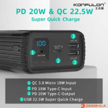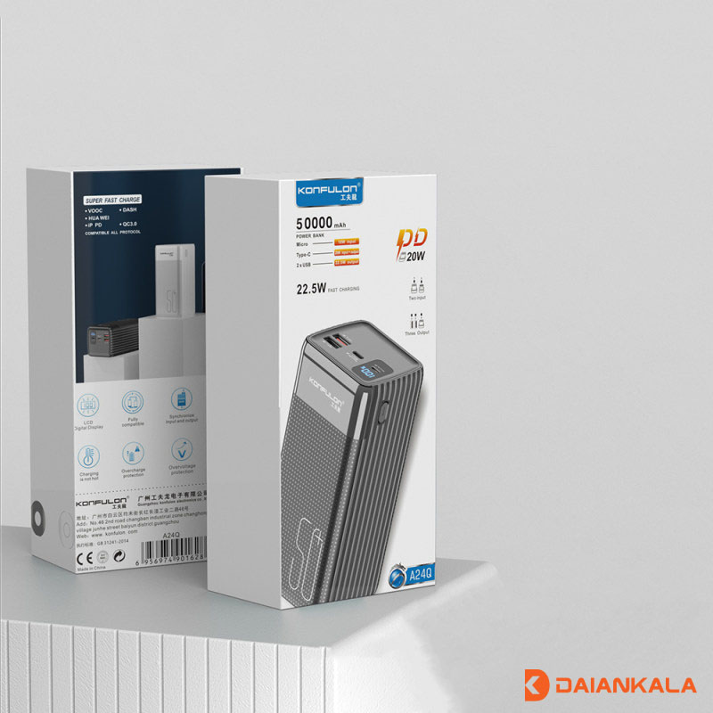 پاوربانک کانفلون KONFULON مدل A24Q ظرفیت 50000 میلی آمپر