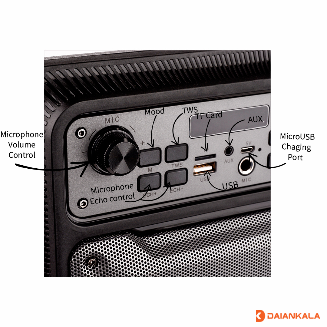 یک ویژگی جذاب این اسپیکر، پشتیبانی از میکروفون با ورودی AUX در قسمت جلویی آن است. باطری این اسپیکر با ظرفیت 2400 میلیآمپر ساعت، تا 5 ساعت پخش موسیقی پی در پی را تازه میکند. نسخه 5 بلوتوث اسپیکر بلوتوثی پرووان مدل PSB 4910، اتصال به دستگاهها را بسیار ساده میکند.